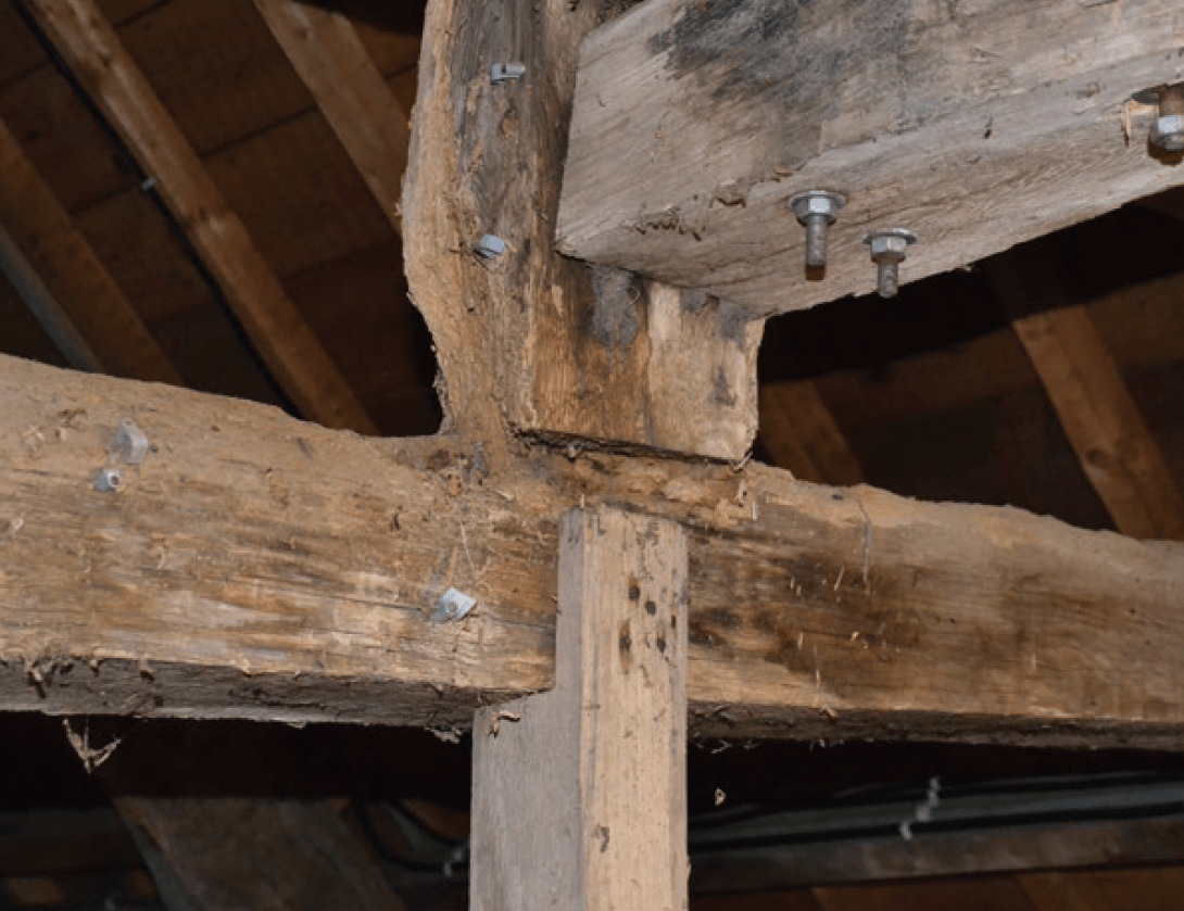 Le clocher et le beffroi présentent également d’importants désordres : basculement de la croix du clocher vers l’ouest, mais également fragilisation de la structure du beffroi nécessitant l’arrêt du battement des cloches en 2023. L’attaque de la tribune et de son mobilier par des insectes lignivores est telle que la structure est fragilisée et que l’accès y est interdit.