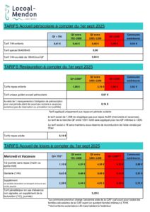 La commune perçoit des recettes pour son budget, grâce à certains services. Retrouvez ci-dessous les tarifs pour les différents services en vigueur.