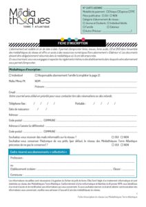 L’accès à la médiathèque est gratuit, ainsi que la consultation des documents sur place et l’utilisation des postes informatiques et d’Internet. L’emprunt de document est soumis à inscription et payant.